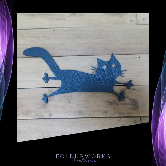 Playful Knife Cat Shelf Sitter – Gothic Wood Cat Decor – Black Cat Halloween Decoration – Spooky Home Accent - Glow in the Dark Eyes