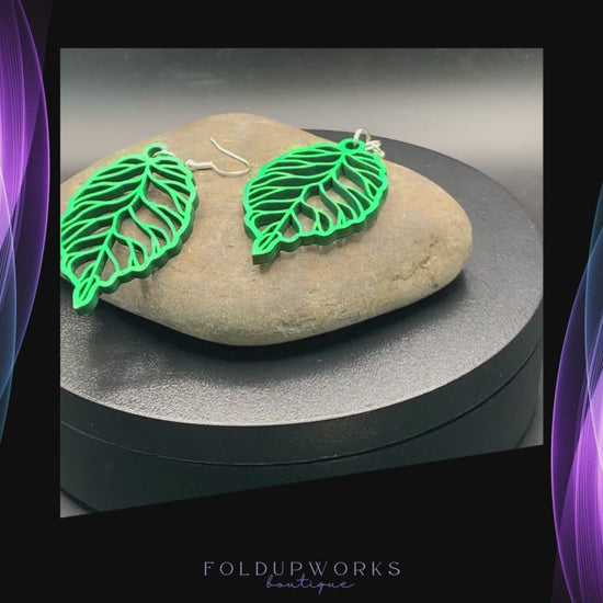 Elevate your style with these exquisite handmade green leaf earrings, a perfect blend of nature-inspired beauty and modern craftsmanship. Designed for those who appreciate unique, eco-friendly jewelry, these earrings feature a delicate leaf pattern, carefully laser cut from high-quality wood. Their lightweight design makes them incredibly comfortable to wear all day, whether you're dressing up for a special occasion or adding a subtle statement to your everyday outfit.